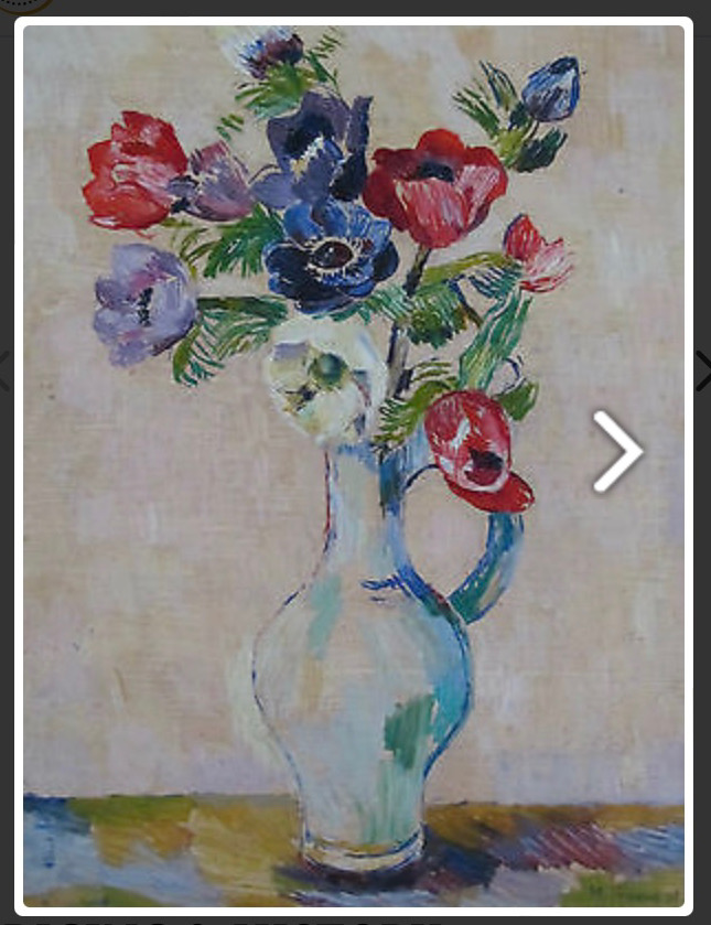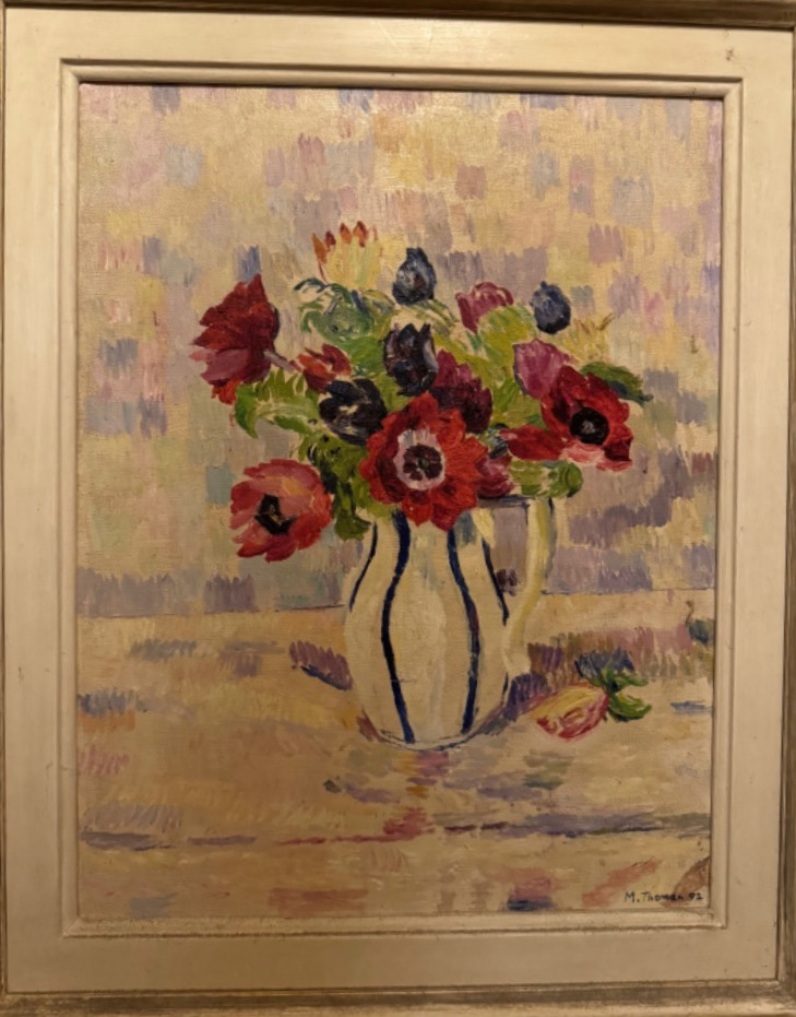 Anemones in brown jug. Gouache