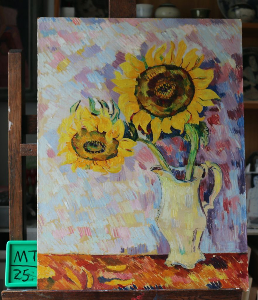 Sunflowers x2 in cream jug.